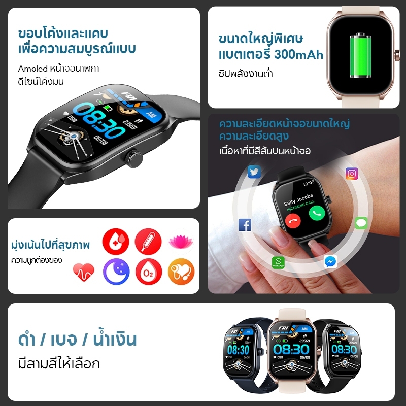 Aolon Curve สมาร์ทวอทช์ หน้าจอโค้ง HD 2.01 " 100+ โหมดกีฬา กรอบโลหะผสมสังกะสี อัตราการเต้นของหัวใจ ออกซิเจนในเลือด การตรวจจับการนอนหลับ ก้าววิ่ง