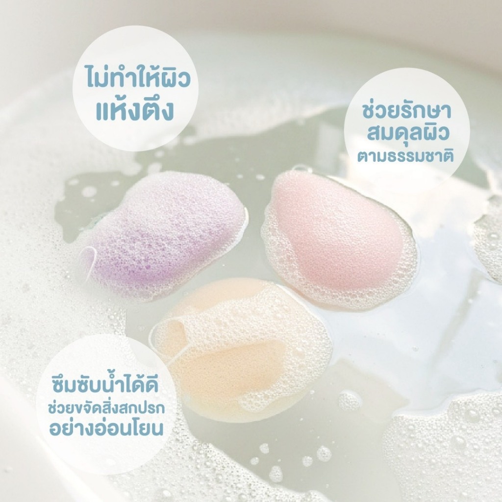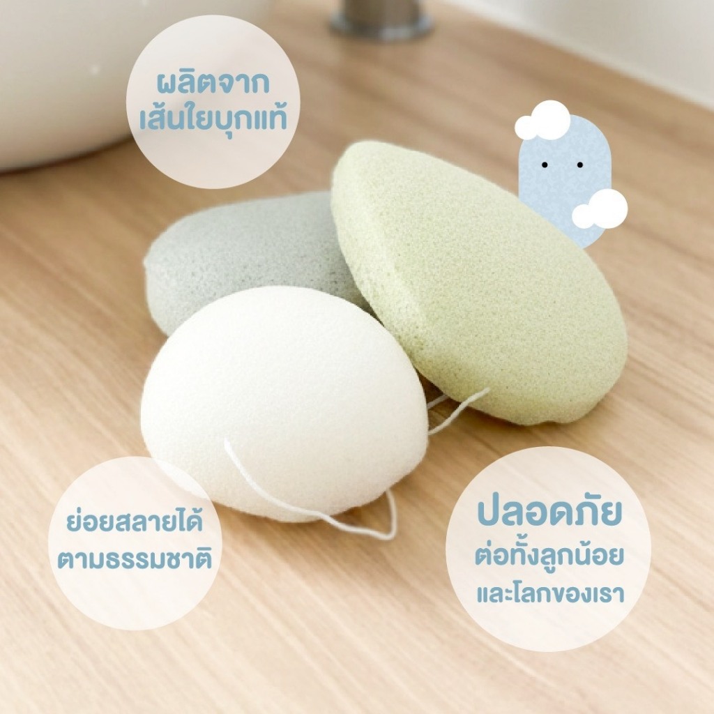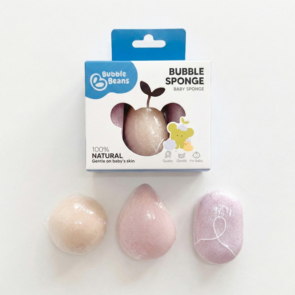 Bubble Beans ฟองน้ำเด็ก ใยบุกธรรมชาติ ไม่ระคายเคืองผิว 3ชิ้น/กล่อง รุ่น UW023/UW024/UW059