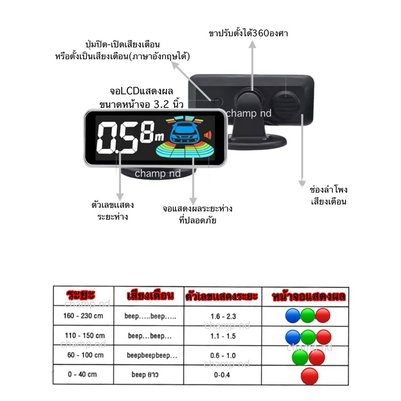 📣พร้อมส่งในไทย🇹🇭ชุดเซ็นเซอร์ถอยมีเสียงเตือนแบบจอLCDอย่างดีพรีเมี่ยมแม่นยำเดินหน้า,ถอยหลังรถอย่างมั่นใจ4,6,8จุดรหัสCH-06
