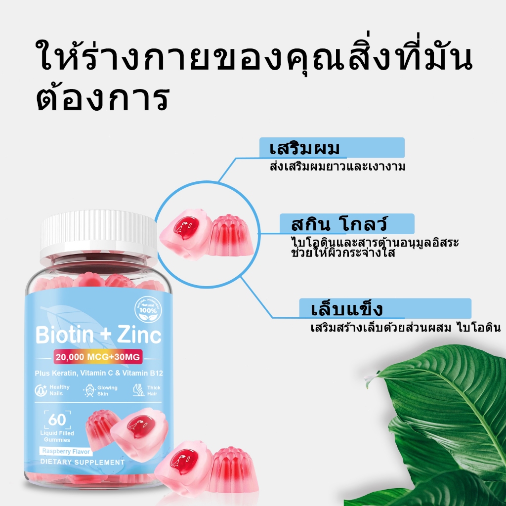 Omilay Zinc Biotin ไบโอติน วิตามินผม Biotin Zinc Gummy for Hair Skin Nails Health วิตามิน Zinc 60 เม็ด