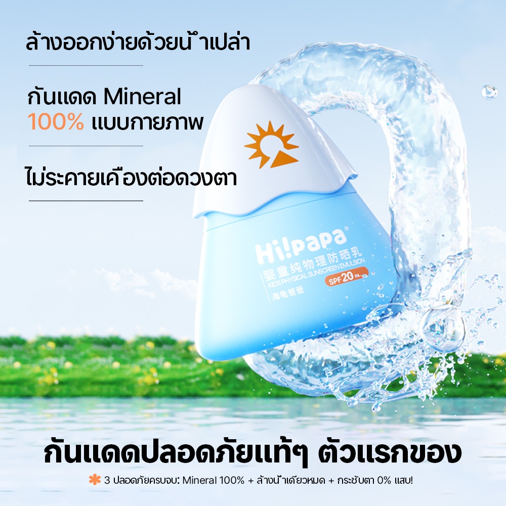 Hi!papa ครีมกันแดด SPF20 PA+ ครีมกันแดด Physical 100% อ่อนโยน ปลอดภัย สำหรับผิวบอบบาง เบบี้6เดือน+