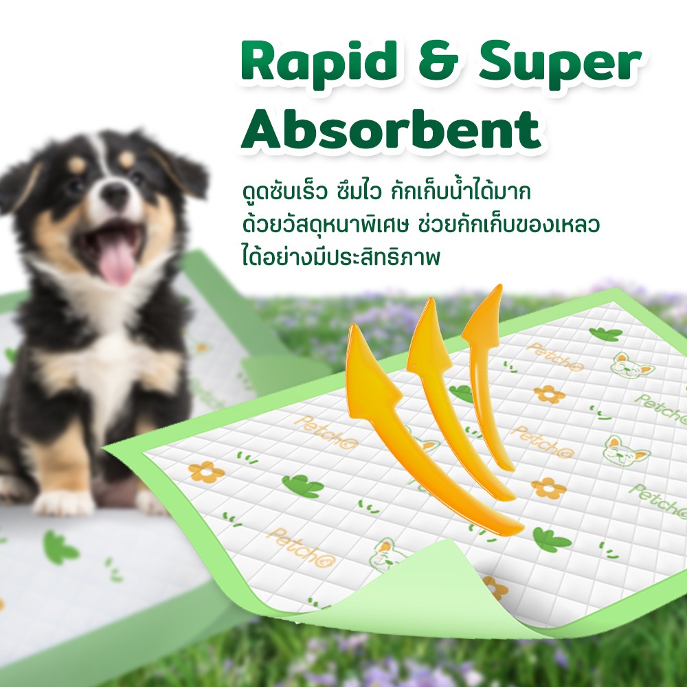 Petcho แผ่นรองฉี่สุนัข แผ่นซับฉี่หมา กลิ่นหญ้าสดชื่น ดูดซับไว ลดกลิ่น กันซึม ไม่รั่ว สำหรับฝึกขับถ่าย