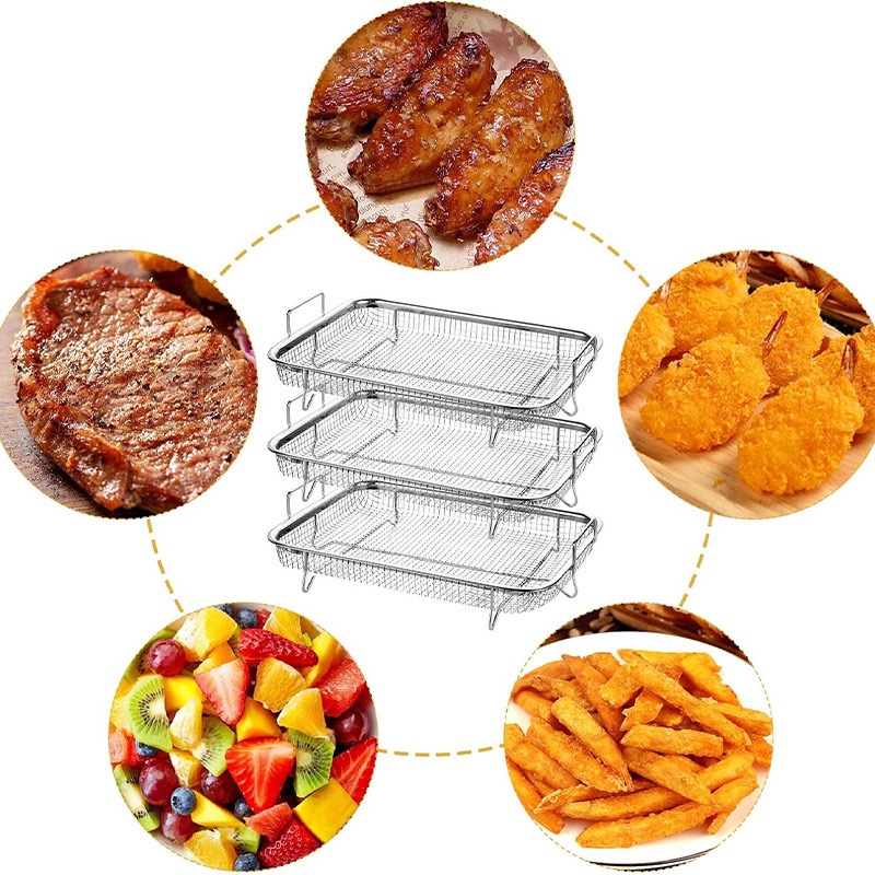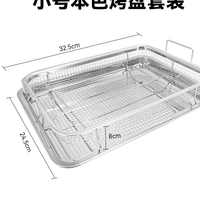 2 ชิ้น ตะแกรง+ถาด ตะกร้าพักของทอดสแตนเลสตื้น มีขาตั้ง/หูจับสองข้าง ตะแกรงรองน้ำมันตะแกรงสแตนเลส