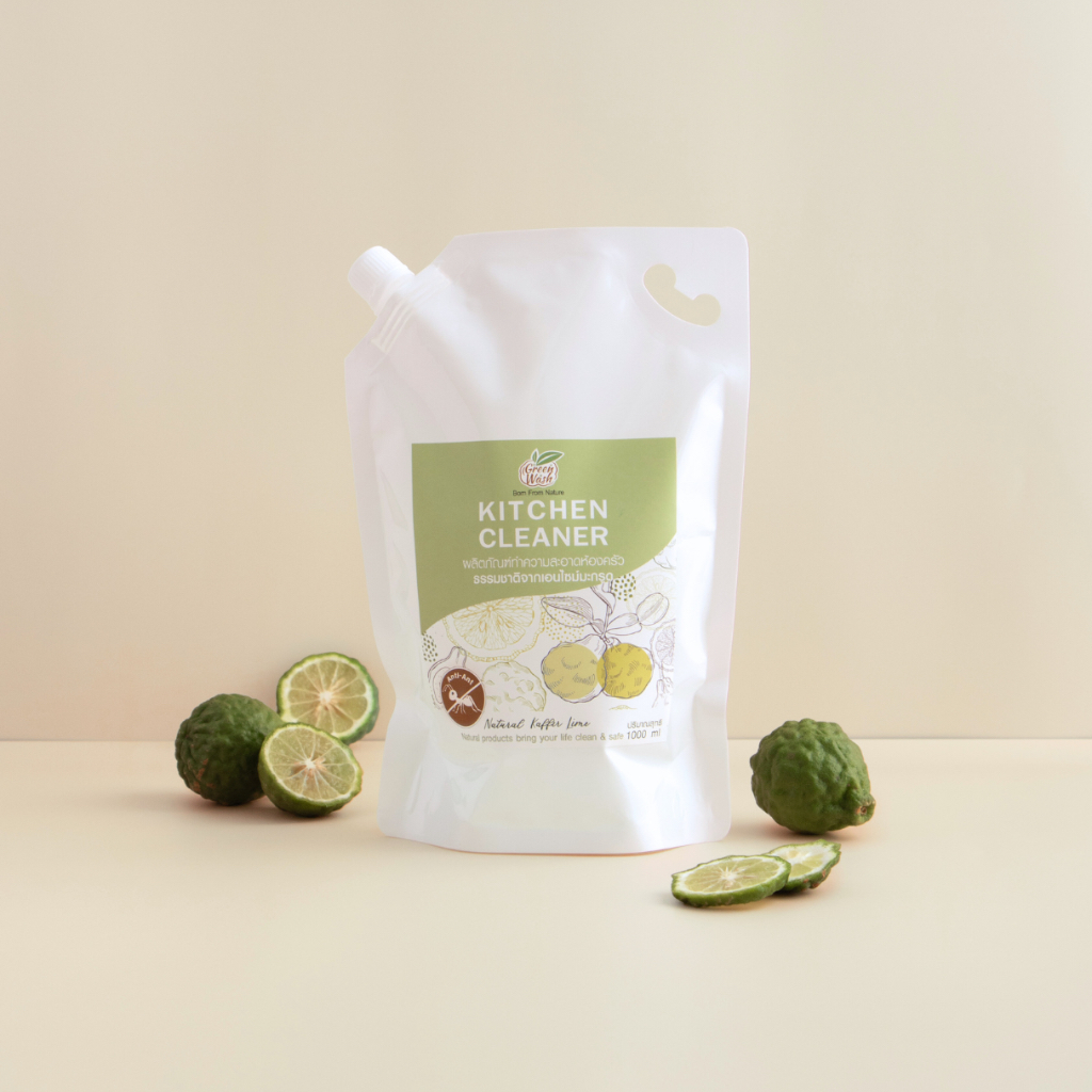 (โปรยกลัง 7 ถุง) GreenWash Kitchen Cleaner น้ำยาทำความสะอาดครัวออร์แกนิคจากเอนไซม์มะกรูด ถุงรีฟิลล์ 1 ลิตร