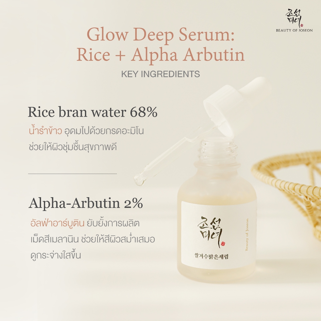 Beauty Of Joseon Glow Deep Serum : Rice +Alpha-Arbutin โกลว์ ดีป เซรั่ม ไรซ์ + อัลฟาอาร์บูติน 30 ml.