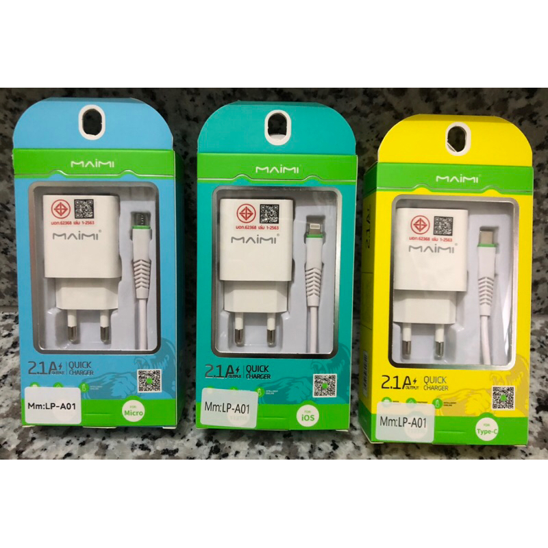 ชุดชาร์จMaimi รุ่นLP-A01(T13)(มี มอก.) 2.1A for IP Micro type-c (มอก.62368 เล่ม1-2563)