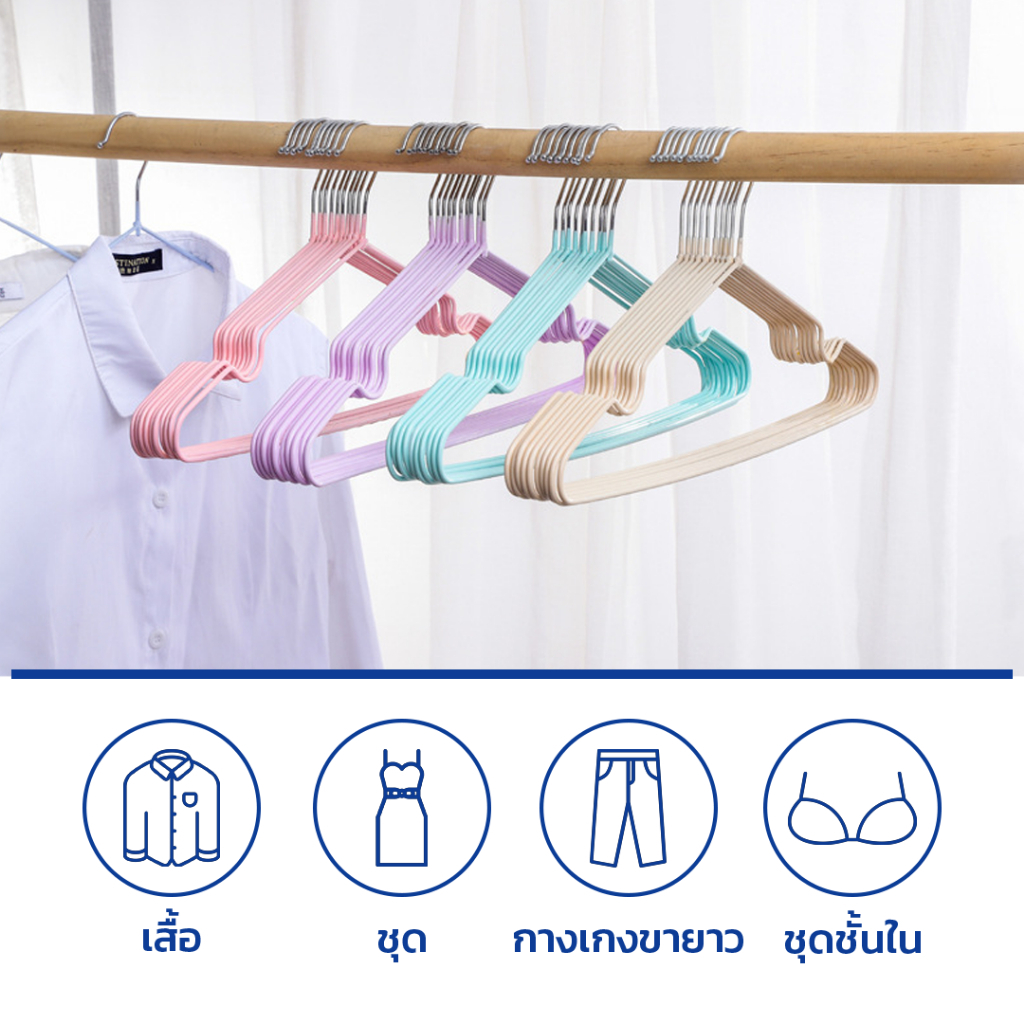 Eden จัดส่งรวดเร็ว ไม้แขวนเสื้อ ( 6แพ็ค/60ชิ้น )ไม้แขวนเสื้อเคลือบซิลีโคนกันลื่น รับน้ำหนักได้ดี