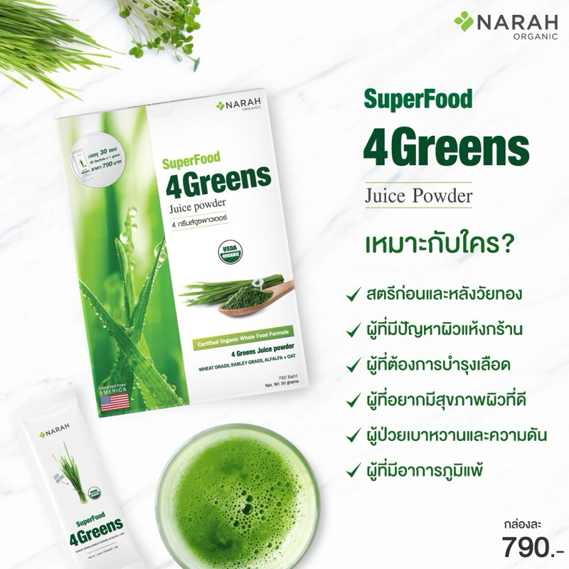 NARAH 005 ชุดบาลานซ์ร่างกาย (4Free1) 4GREENS JUICE POWDER (30 SACHETS) แถมฟรี Traveling Pack 5 ชิ้น