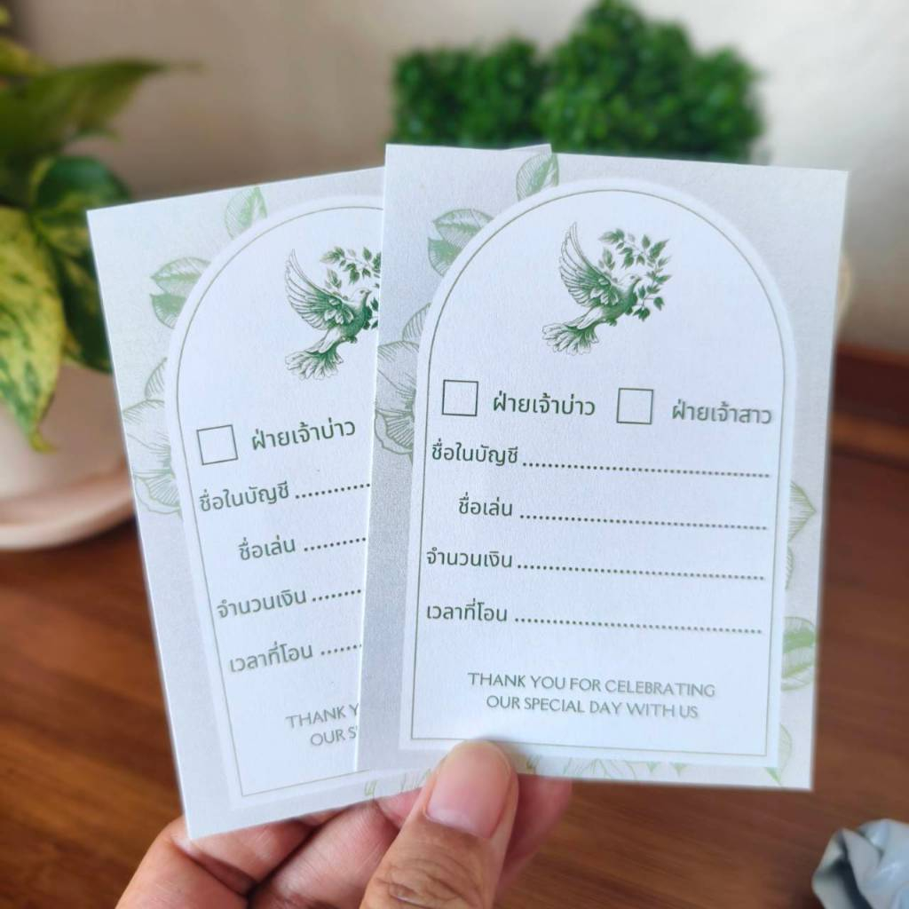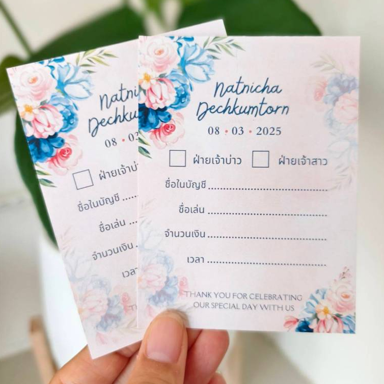 ใบแจ้งการโอนเงินงานแต่ง แจ้งโอนงานแต่ง ใส่กล่องรับซอง