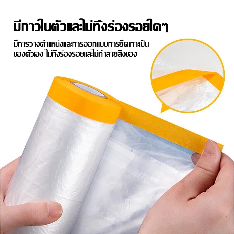 พลาสติกคลุมกันฝุ่นกันน้ำ มีเทปกาวในตัว คลุมพ่นสี โซฟา เตียง โต๊ะ เก้าอี้