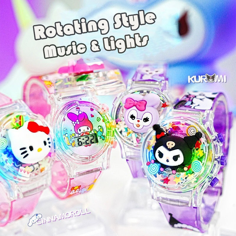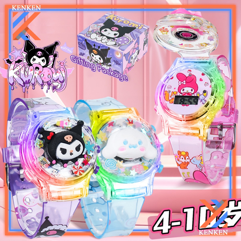 ล่าสุด ซานริโอ คุโรมิ ส่องสว่างเพลงนาฬิกาหมุนพลิก ทํานอง เด็กที่มีสีสันกระพริบนาฬิกา นํา ของเล่นของขวัญวันเกิด