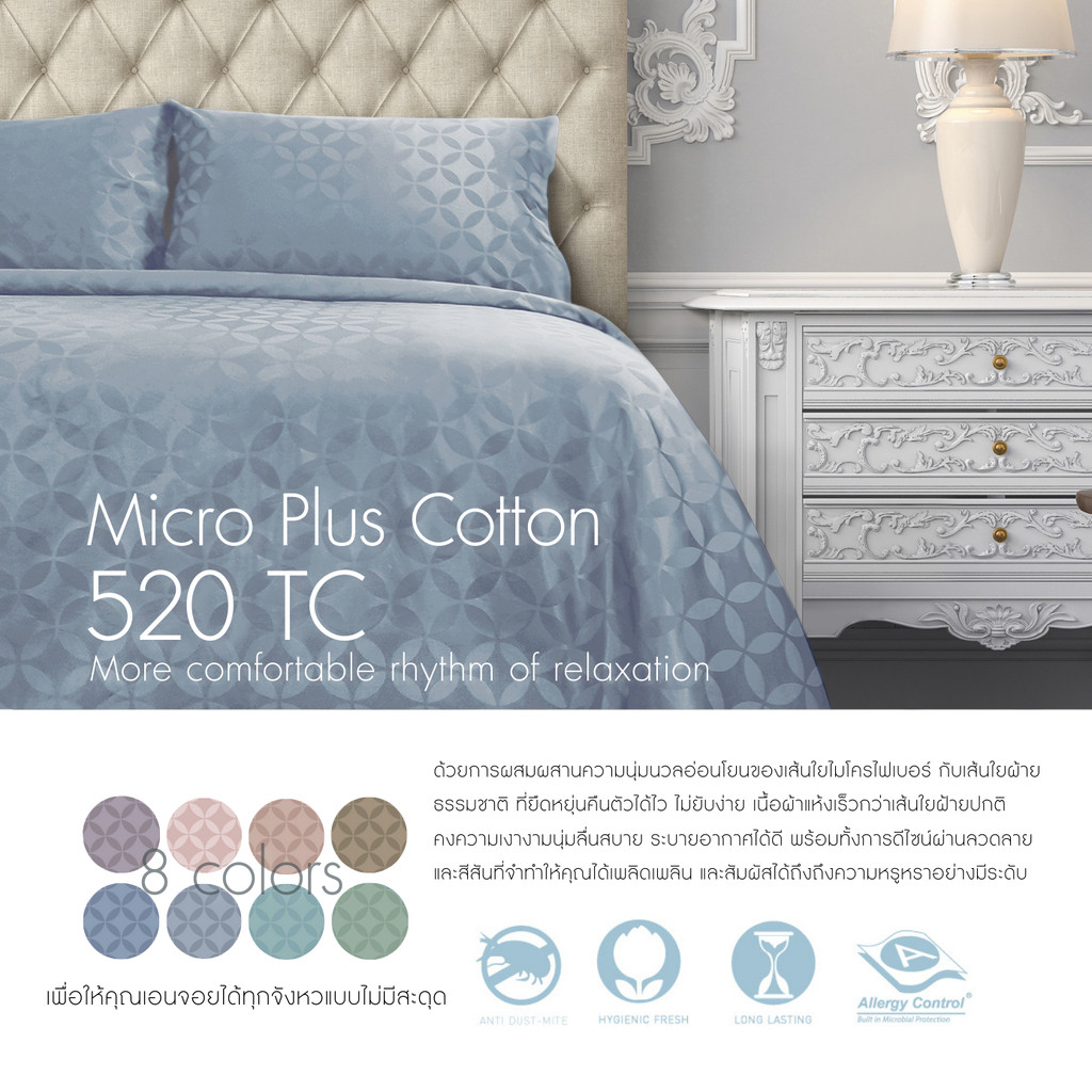 [Clearance Sale] Synda ผ้าห่ม ผ้านวมเย็บติด Micro Plus Cotton 520 เส้นด้าย รุ่น Verbena 8 สี