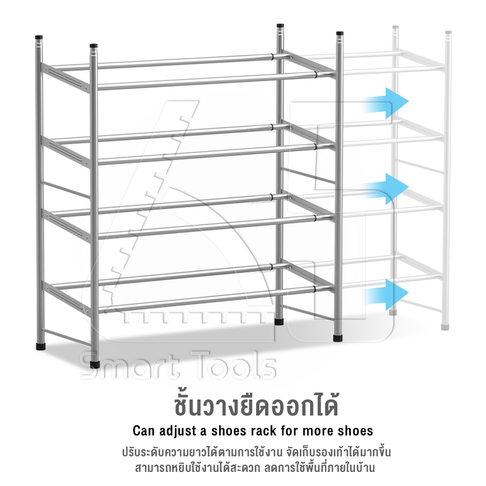 [ลดพิเศษ] InnHome ชั้นวางรองเท้า 4 ชั้น ยืด-หดได้ ที่วางรองเท้า Shoe Rack สแตนเลส ชั้นเก็บรองเท้า รุ่น XJ274