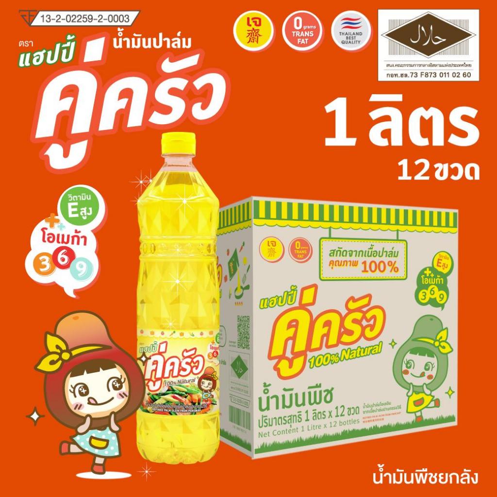 คู่ครัว 1 ลิตร 12 ขวด น้ำมันพืช ยกลัง *สุดคุ้ม ในราคาขายส่ง* (น้ำมันปาล์ม/อย.GMP/ฮาลาล)