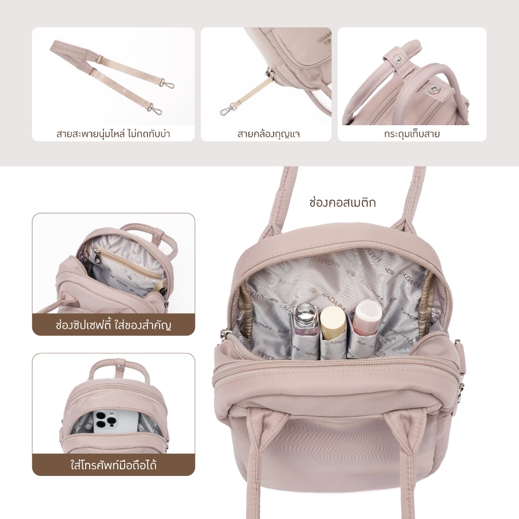 Hadara Moment Series No.26 กระเป๋าสะพาย 11 ช่องใช้งาน ผ้า Deluxe Nylon กันน้ำ 80%