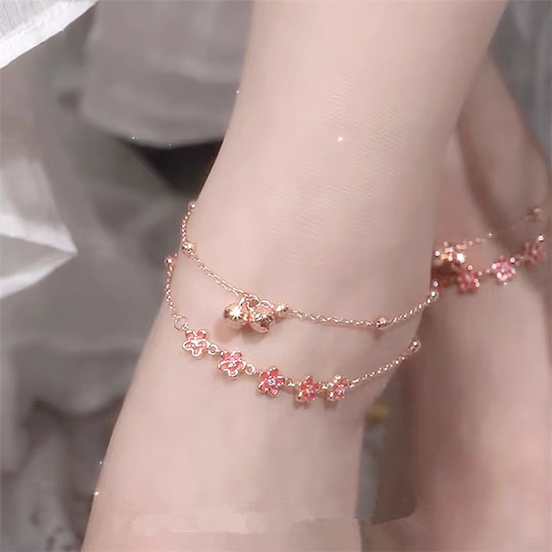กำไลข้อเท้ากระดิ่งดอกพีช สไตล์โบราณ ออกแบบอย่างอ่อนโยนและประณีต