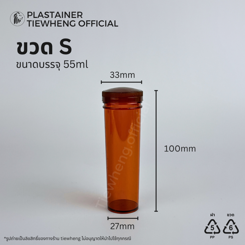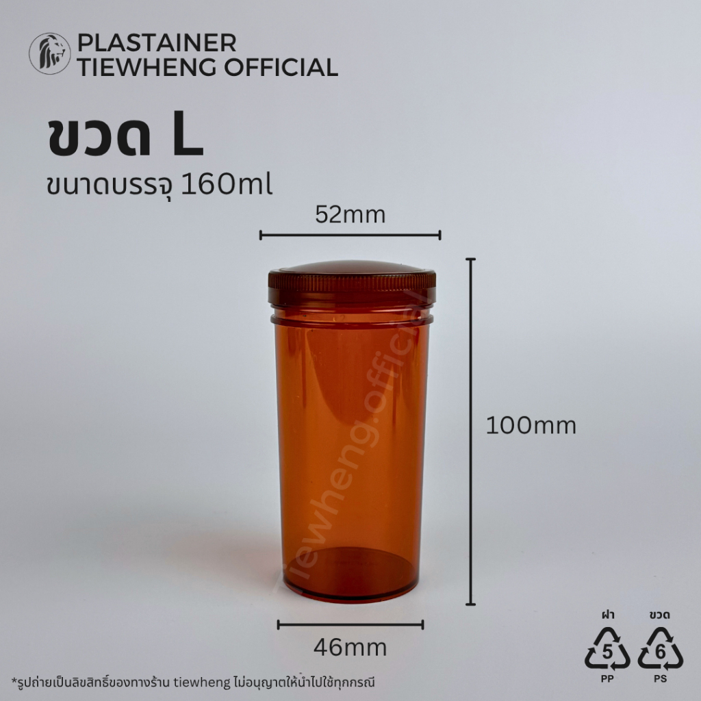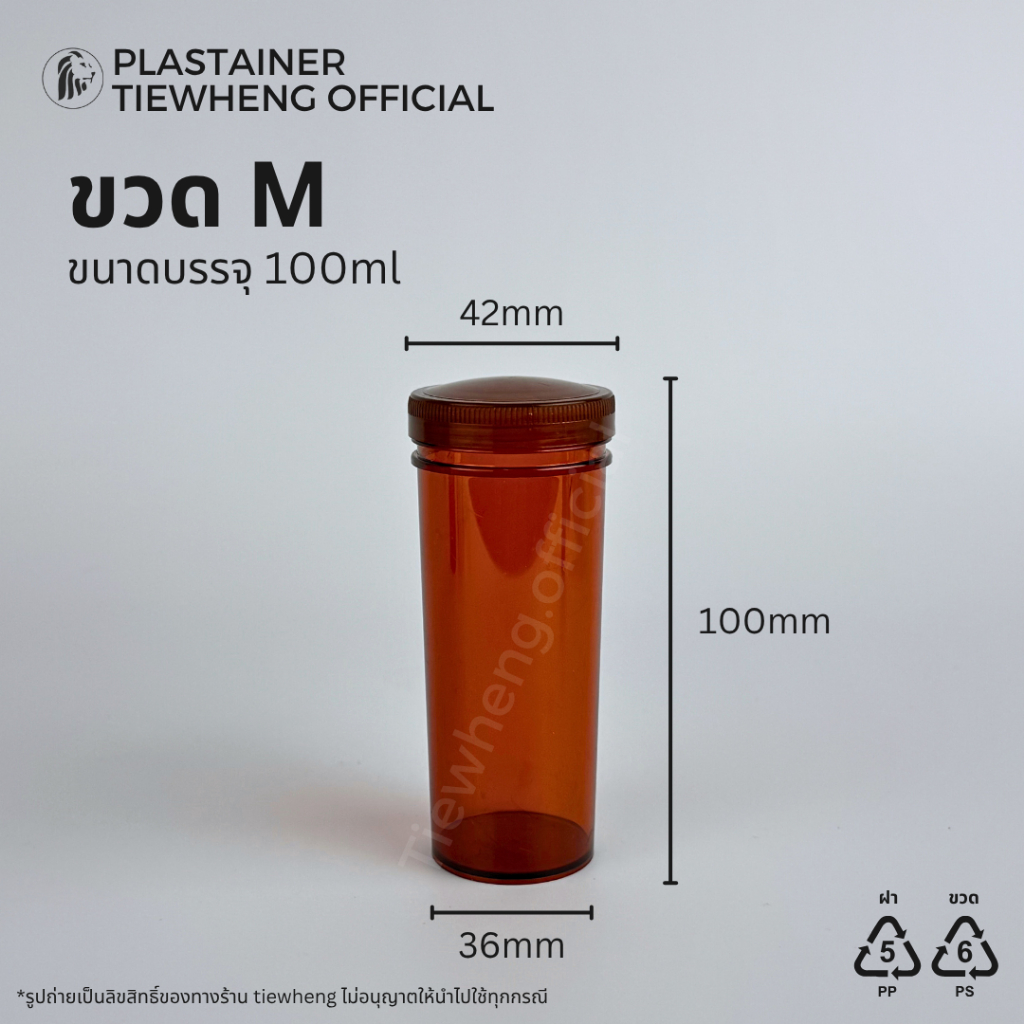 ขวดยา กระปุกพลาสติก สีชา L,M,S (1 แพ็ค 5 ชิ้น) ขวดยาทรงยาว กระปุกยา | Tiewheng.offcial