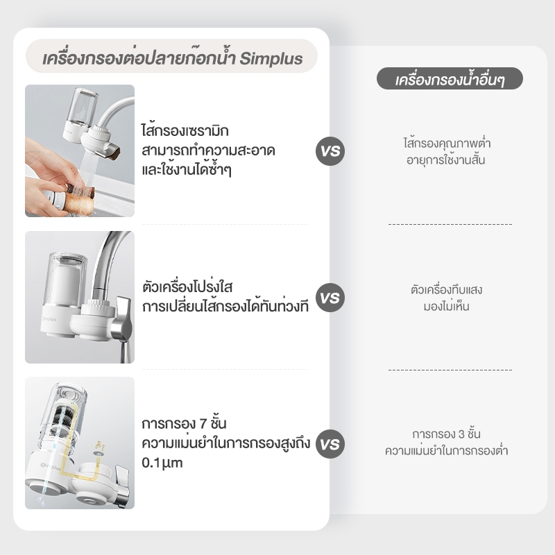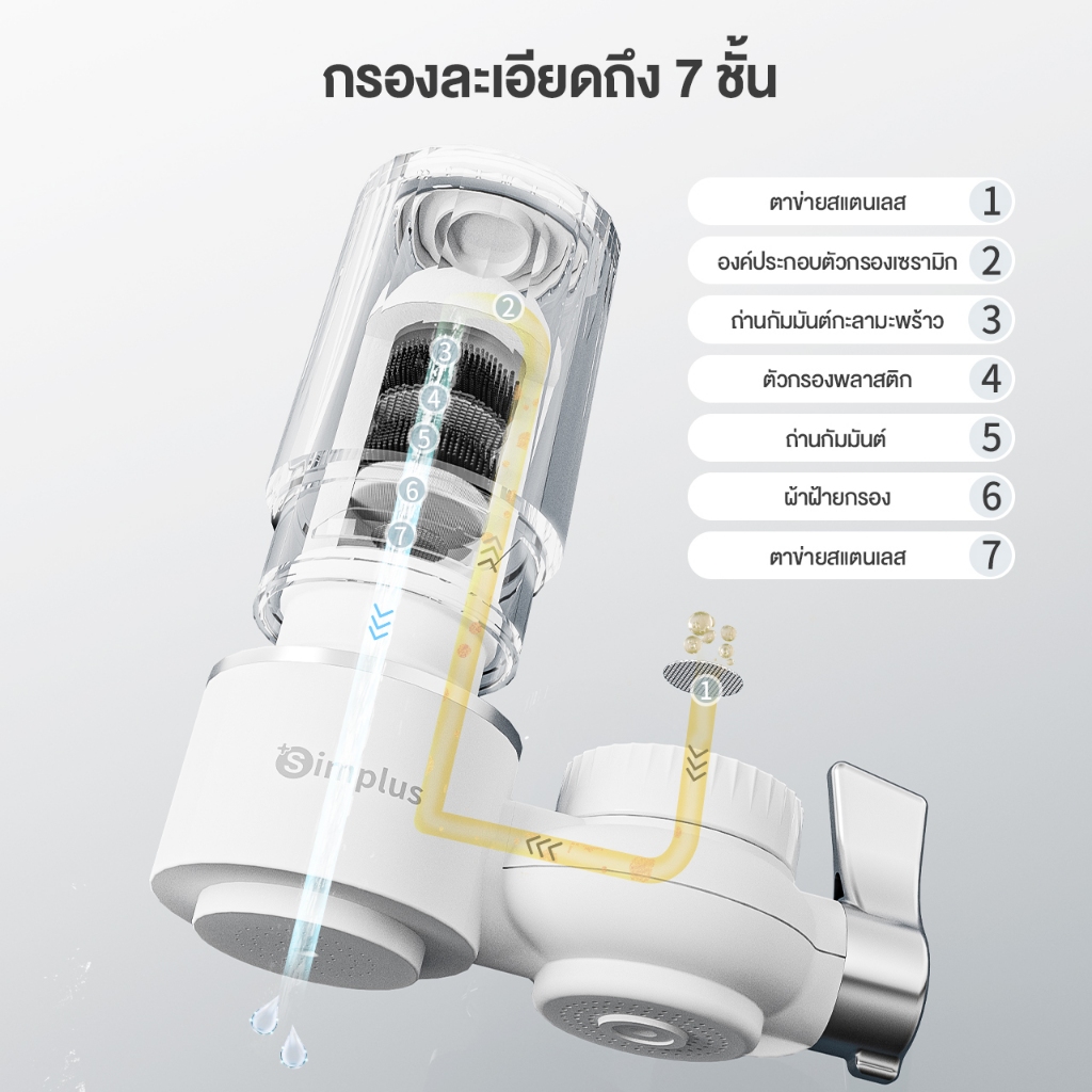 Simplus การกรอง 7 ขั้นตอนบนเครื่องกรองน้ําประปากรองเซรามิกล้างทําความสะอาดได้ใช้คู่ในครัวและห้องน้ํา JSQH005