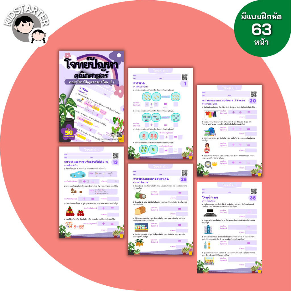 ป.1 2 3 โจทย์คณิตไทย โจทย์ปัญหา คณิตศาสตร์ คณิตคิดเร็ว บวกลบเลข บวกลบคูณหาร แบบฝึกหัด เด็ก แบบฝึกหัด ประถมศึกษา