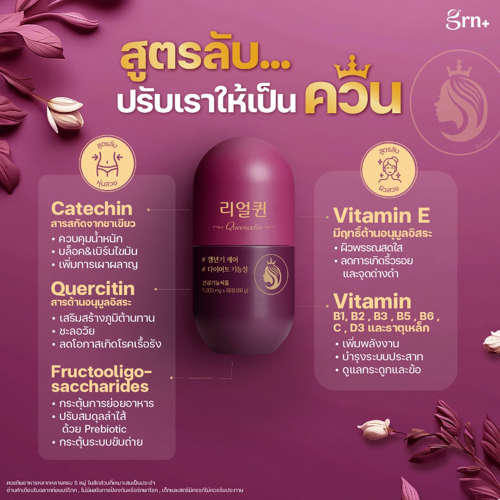 (Exp.23/10/2026) GRN+ [ 1 กระปุก ] Season4 Queencetin วิตามินเกาหลี จองกุก ลดน้ำหนัก คุมหิว วัยทอง ปรับฮอร์โมน