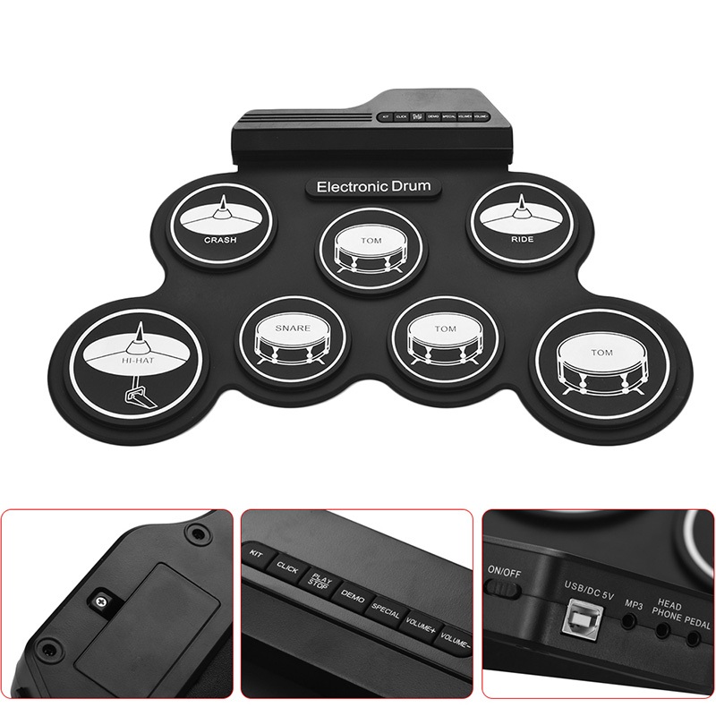 กลองชุด กลองไฟฟ้า กลองชุด 7 ชิ้น ทำจากซิลิโคนคุณภาพดี ขนาดบางพกพาได้ง่าย กลองชุดเด็ก กลอง