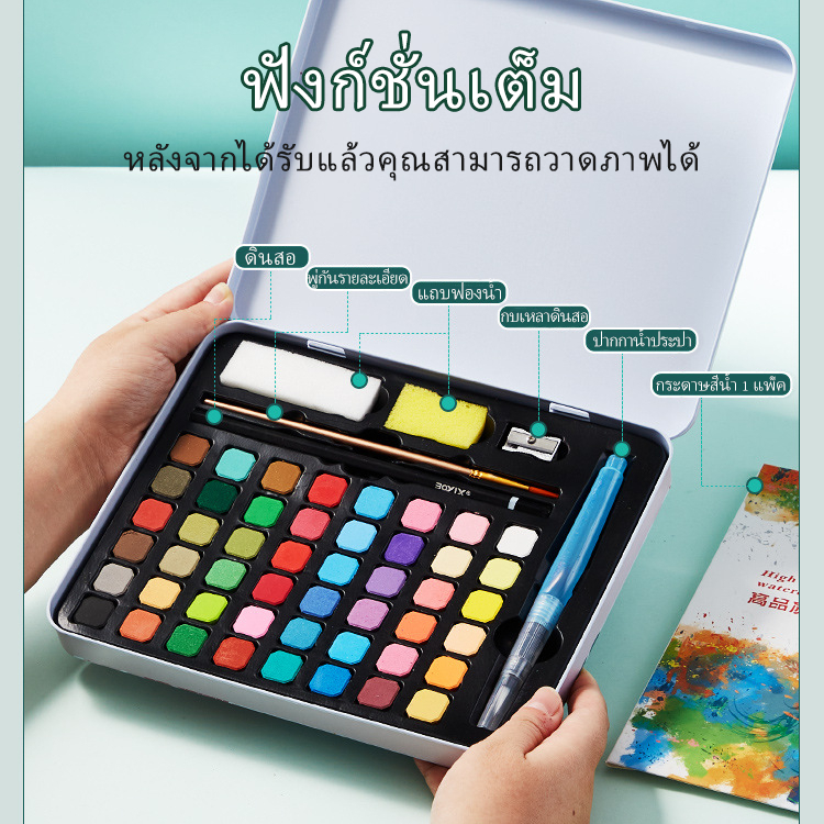 Mizoo ชุดระบายสีน้ำ สีน้ำก้อน 24/36/48สี watercolor อุปกรณ์ 7 ชิ้น กล่องเหล็กโลหะ ชุดพู่กันงานศิลปะ