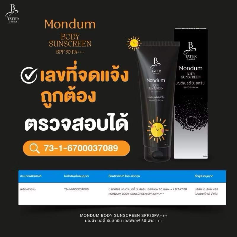 กันแดดมณดำ 1 หลอด กันแดดผิวกายบิ๋มฑาทิพย์ ของแท้จากบริษัท100%