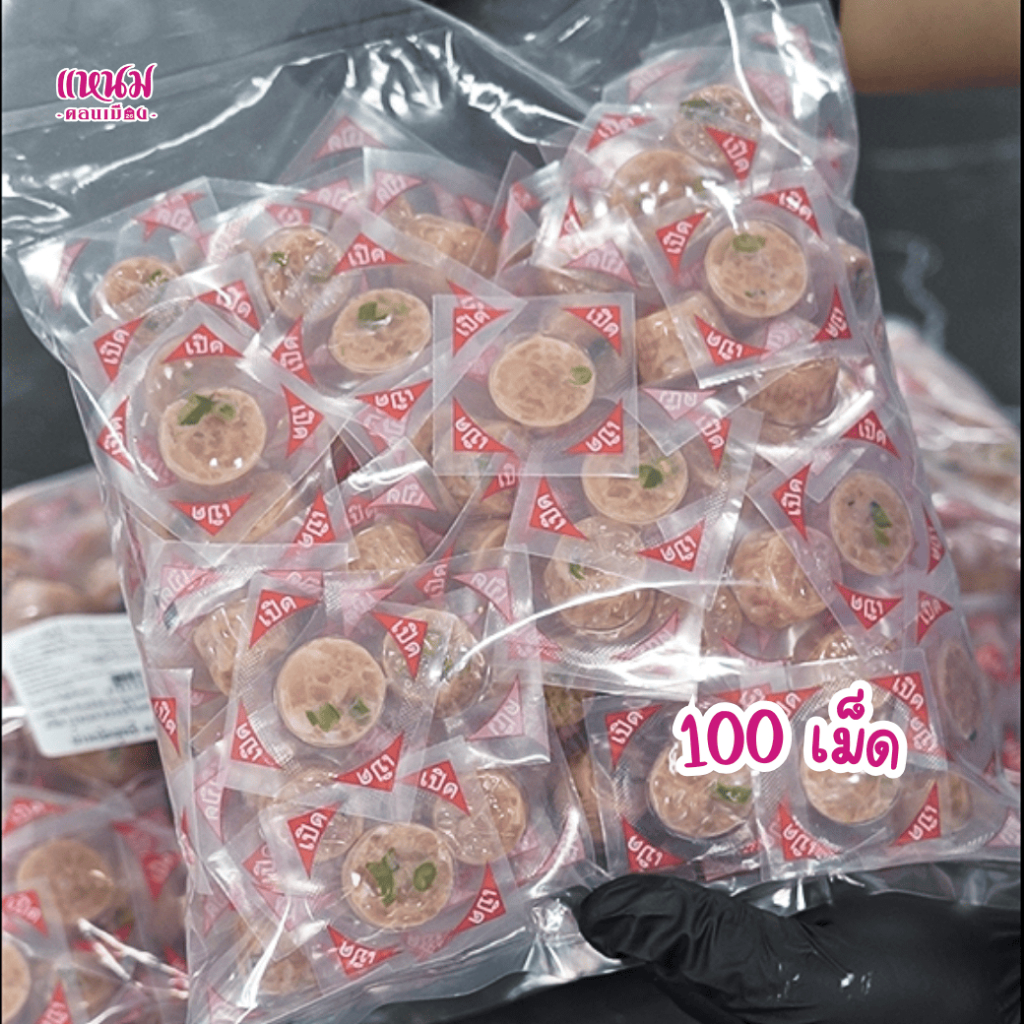 แหนมป็อบ(เเหนมตุ้มจิ๋วเเบบใหม่) 100 เม็ด 600 กรัม ตราเเหนมดอนเมืองกม.26
