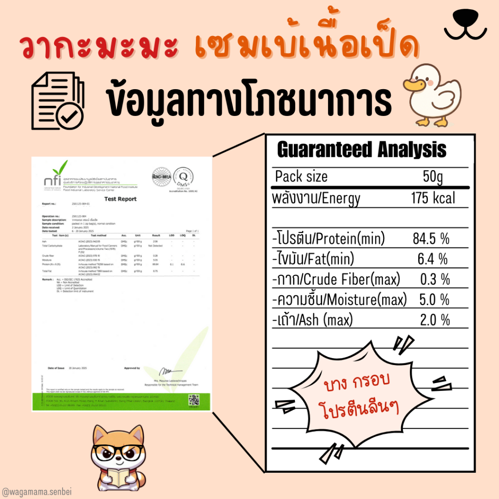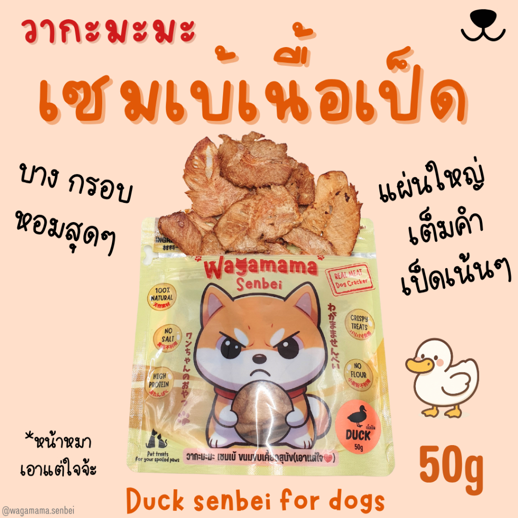 [ขนมสุนัข/Dog Treats] New Wagamama Duck Senbei เซมเบ้ เนื้อเป็ด 100% อุดมไปด้วยวิตามินบี