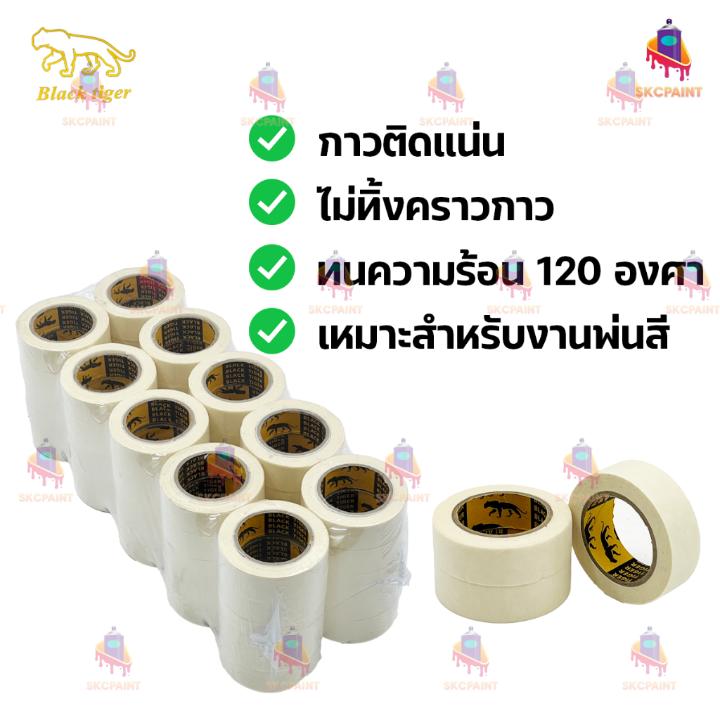 เทปกระดาษกาว Black Tiger Masking tape สำหรับติดพ่นสีรถยนต์