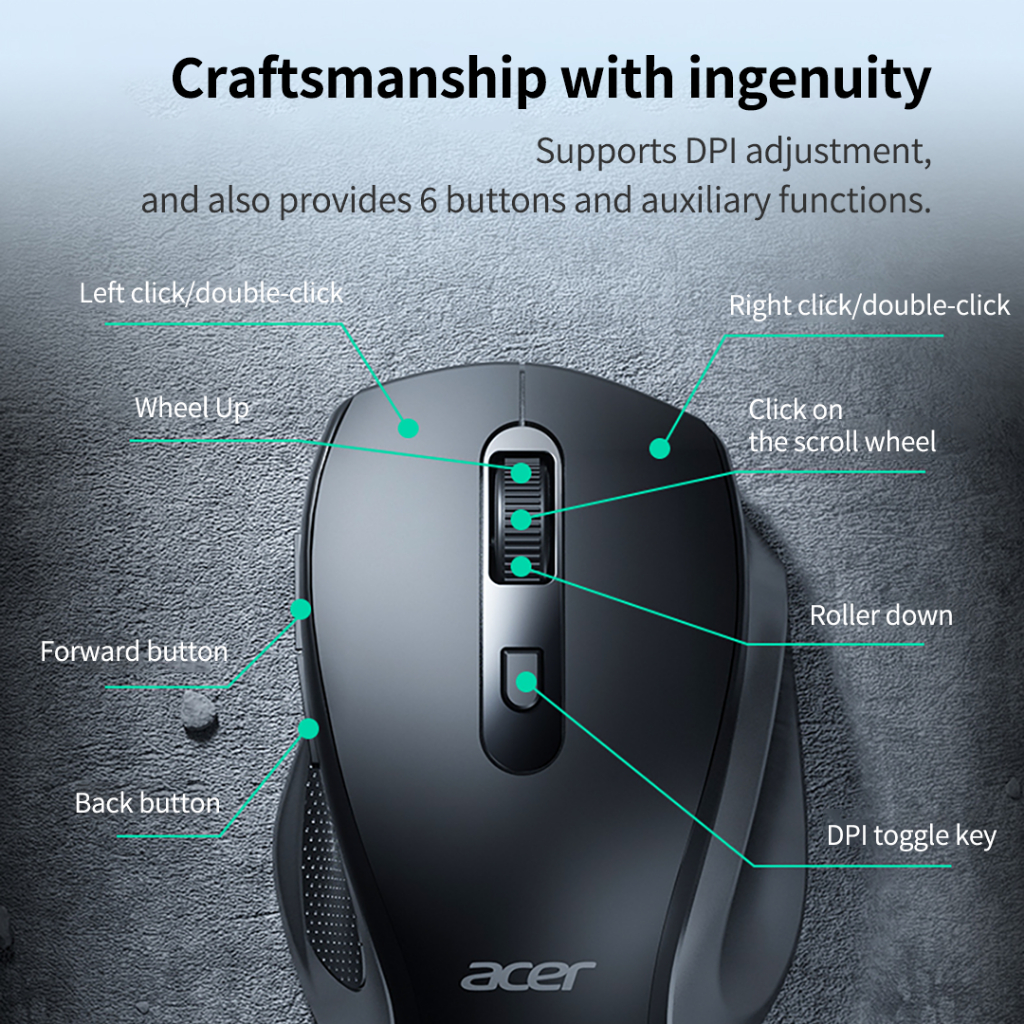 Acer L173-BH เมาส์ไร้สาย 6 ปุ่ม+3DPI อุปกรณ์สำนักงานหลายเครื่องระยะ 10 เมตร
