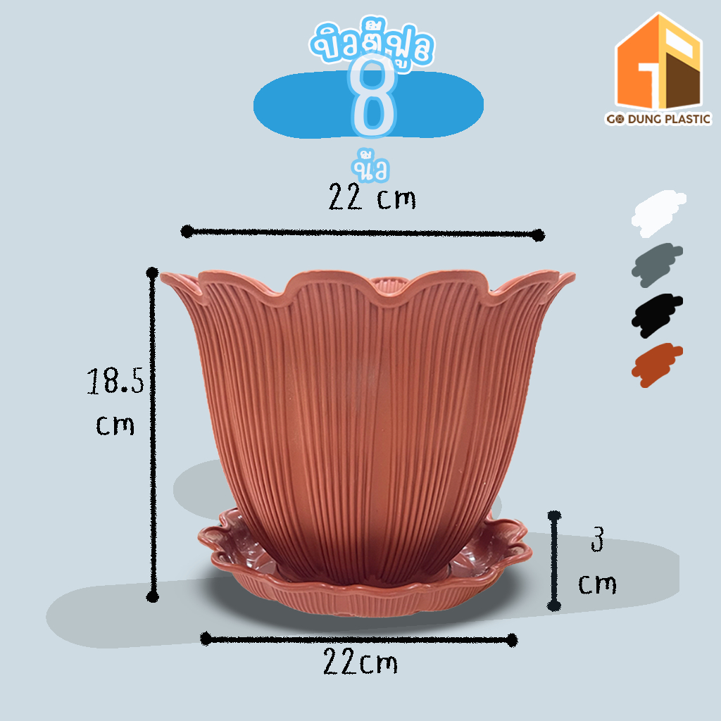 Go Dung Plastic กระถางต้นไม้ บิวตี้ พร้อมจานรอง 6" 8" 10" 12" 15"
