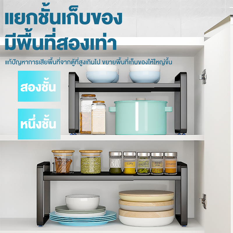 ยืดหดได้ ชั้นวางของในครัว 2ชั้น ชั้นวางในตู้ ประหยัดพื้นที่ วางจานชามได้ ทะและหม้อ เก็บของในครัว คุณภาพดี แข็งแรง ทนทาน