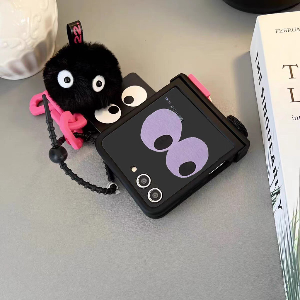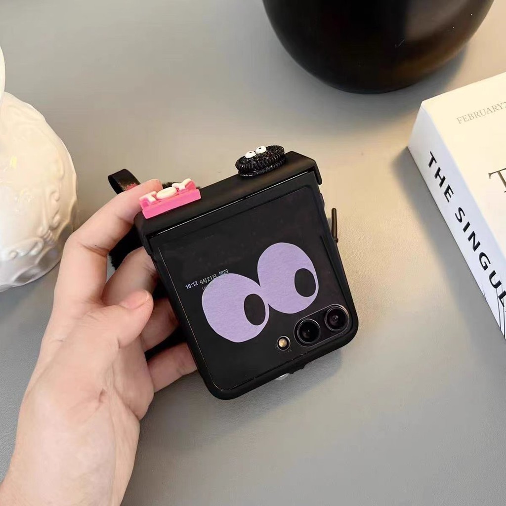 Luken น่ารักสีดําถ่านหินตุ๊กตาสร้อยข้อมือเคสโทรศัพท์สําหรับ Samsung Galaxy Z FLIP 5 flip5 ZFlip6 ZFlip 4 ZFlip 3 OPPO ค้นหา N3 N2 FLIP บานพับฝาครอบป้องกัน