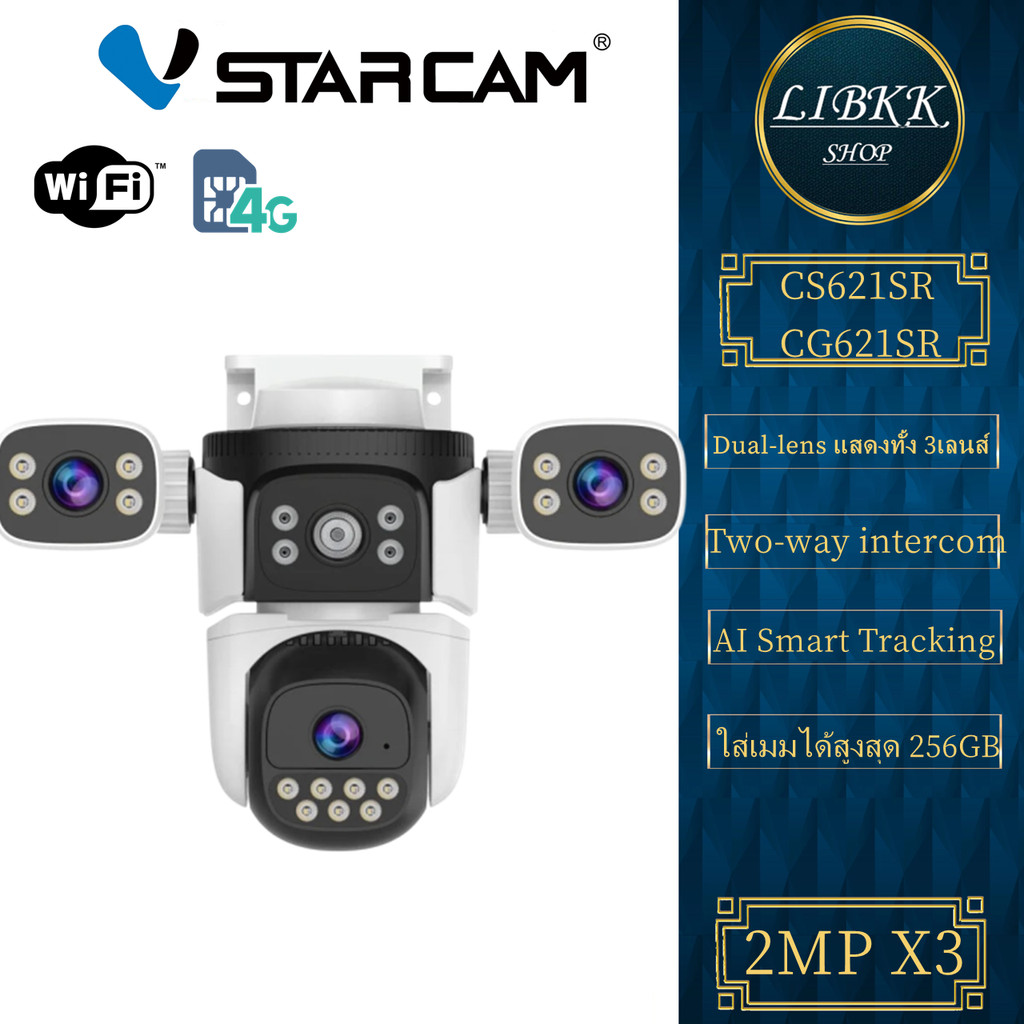 Vstarcam CS621SR CG621SR เลนส์ 3 ตัว 2.0MP X3 กล้องวงจรปิดไร้สาย กล้องนอกบ้าน มีAI+ สัญญาณเตือน
