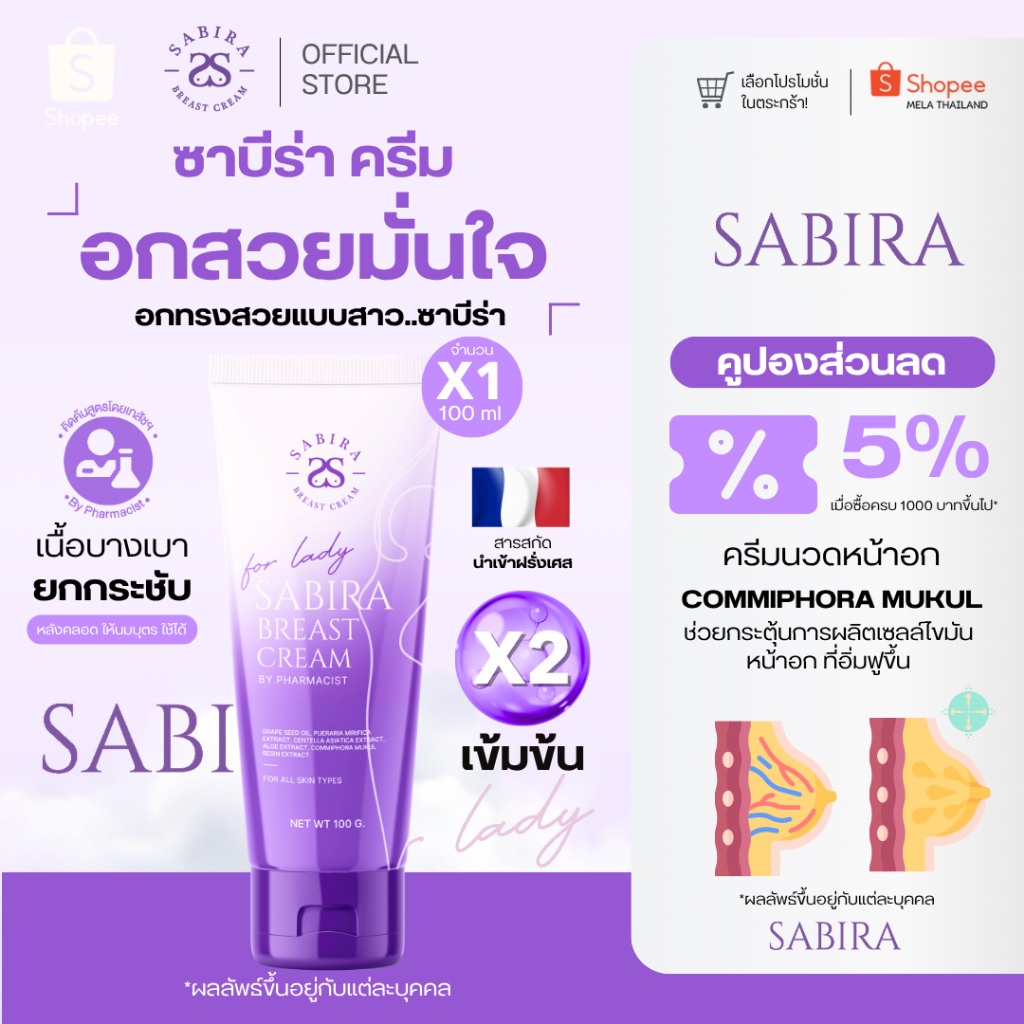 SABIRA Official | SABIRA Breast Cream 100g | เวชสำอางบำรุงทรวงอก ผิวแน่นกระชับ ดูสุขภาพดี