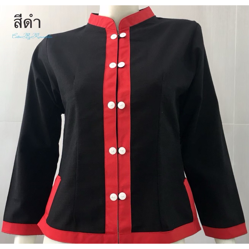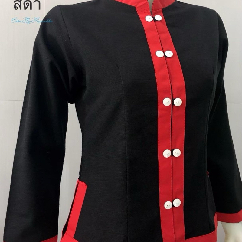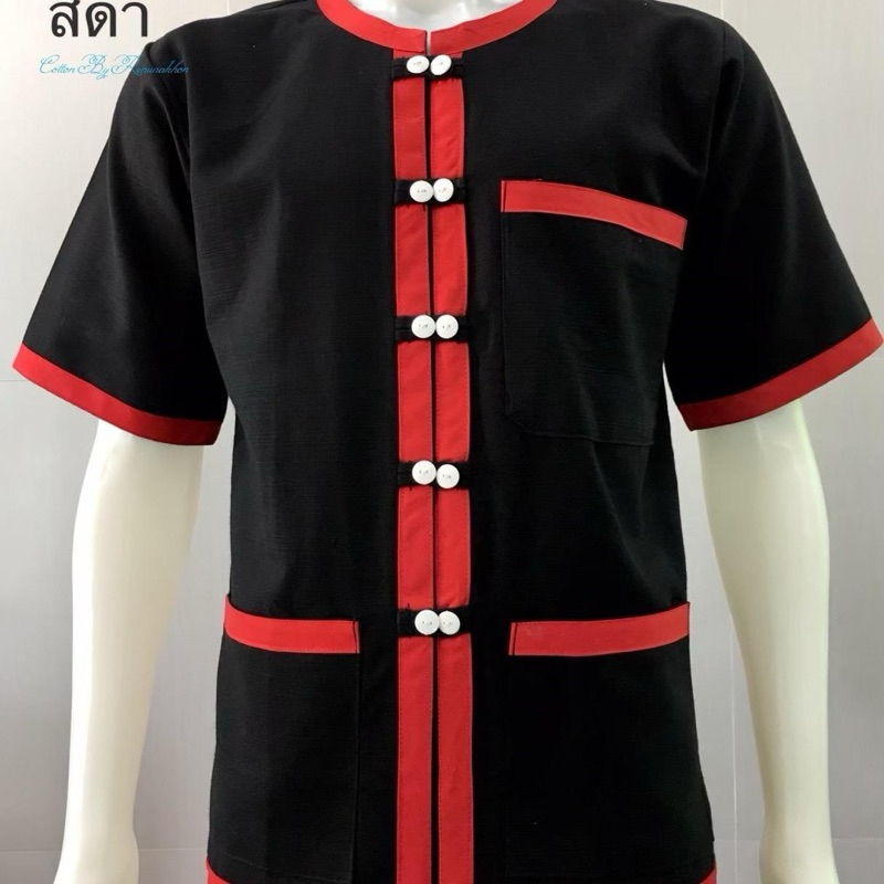 เซ็ตคู่ผ้าฝ้ายสีดำแต่งแดง