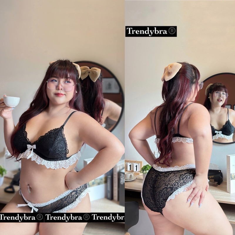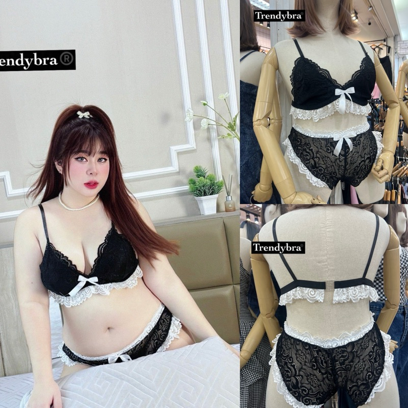 ✅เข้าเพิ่ม พร้อมส่งค่า/TB/ เซ็ตบราสาวอวบ บราลูกไม้ทูโทน ลายผ้านูนสวย สีดำตัดระบายขาว #สาวอวบอ้วน พลัสไซส์
