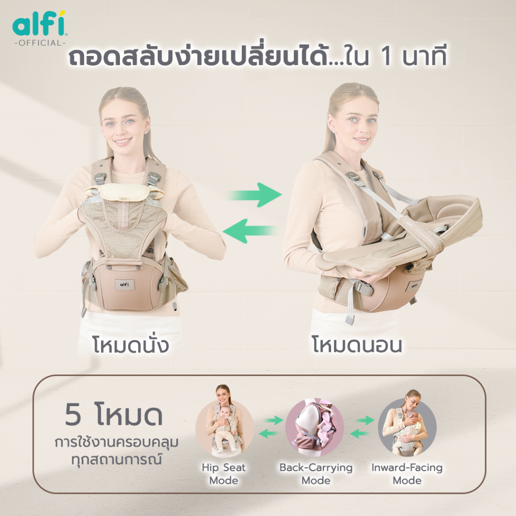 Alfi เป้อุ้มเด็ก มัลติฟังก์ชัน Lulu-4 (แรกเกิด-3ปี)(ใหม่!) เตียงนอนถอดสลับนั่งได้ เจ้าเดียวในไทย! ผ้าน้ำลายออแกนิค 100%!