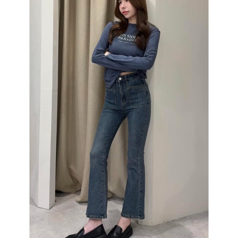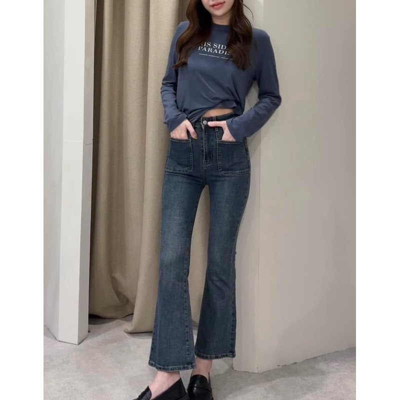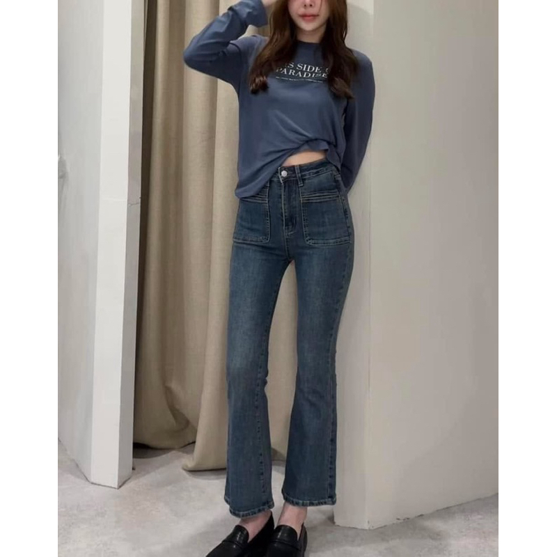 1008-2 กางเกงยีนส์ทรงขาม้า กางเกงยีนส์เอวสูง ผ้ายืดเยอะ งานนำเข้าป้ายแท้ xoxo
