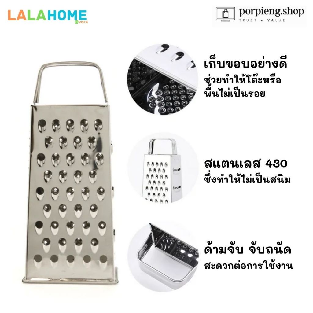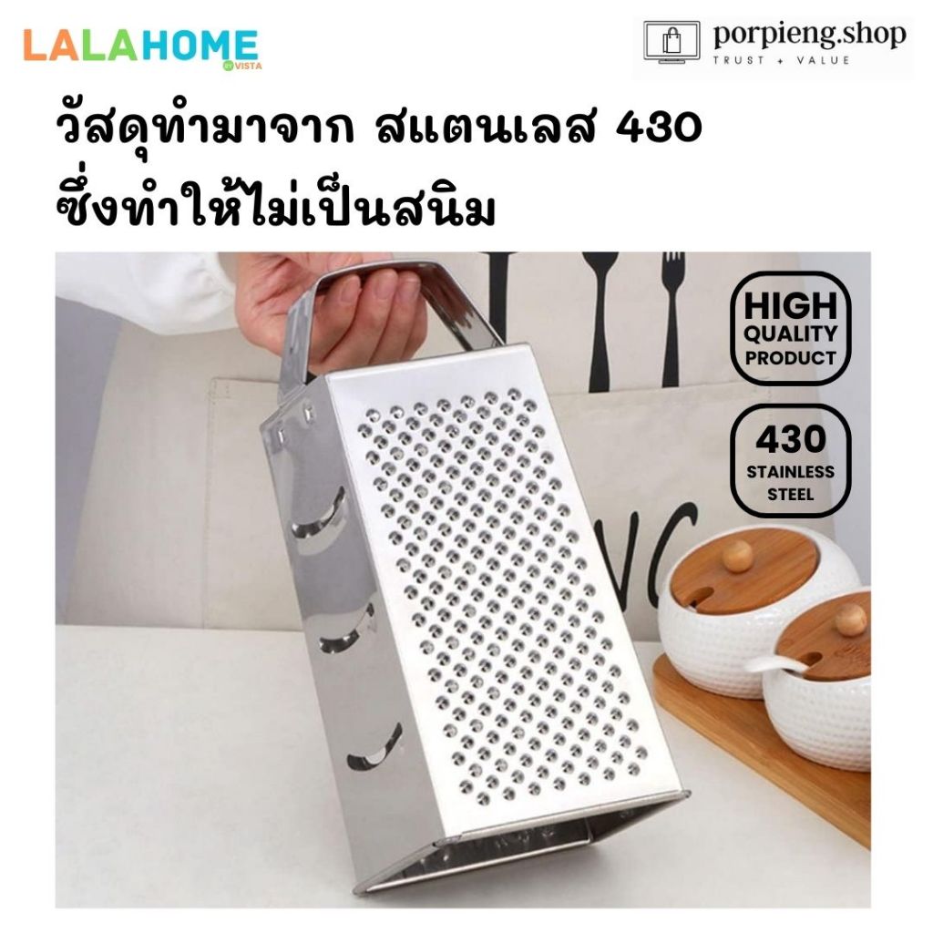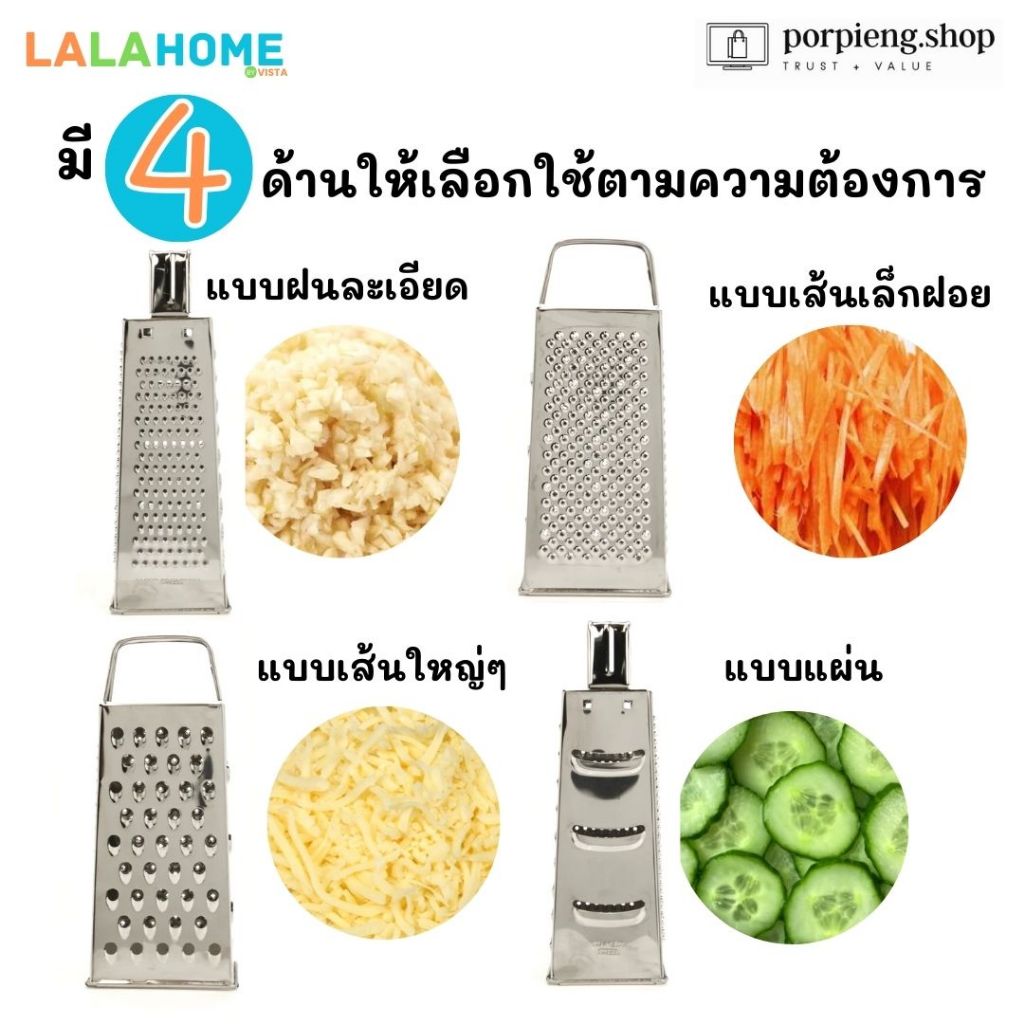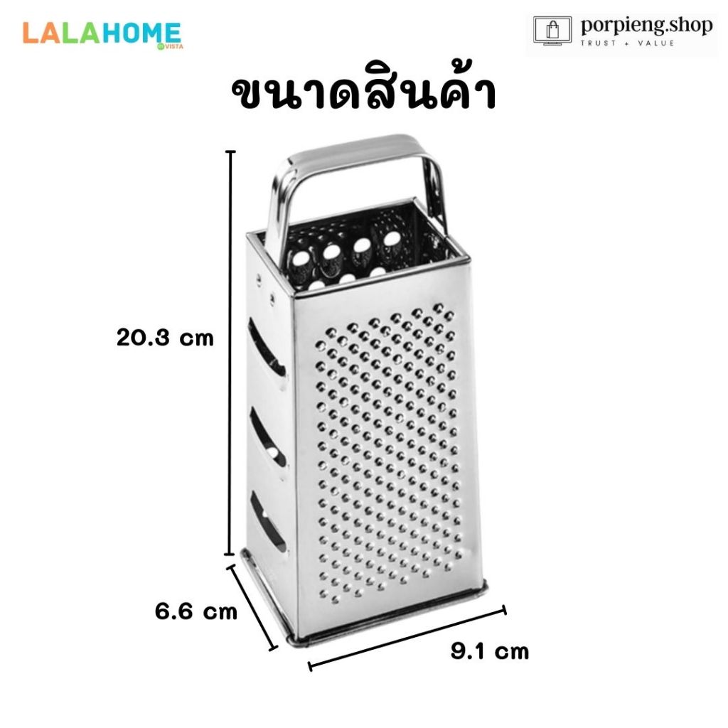 LALA HOME ที่ขูดชีสและสไลซ์ผัก 4 ด้าน สแตนเลสแท้ 430 Grater 4 in 1 ขนาด 8 นิ้ว (20 cm) ใช้ หั่น ซอย ขูด สไลซ์ ทุกอย่าง