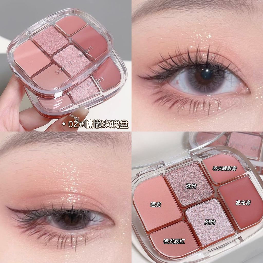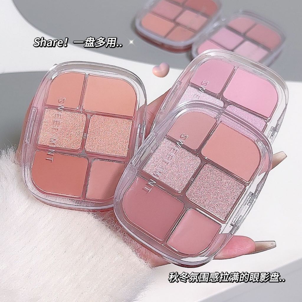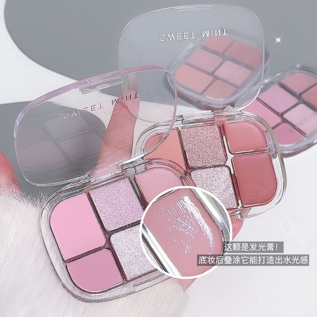 Sweet Mint พาเลทอายแชโดว์อเนกประสงค์ Natural Matte Pearl Glitter Peach Pink Cheek Contour Powder