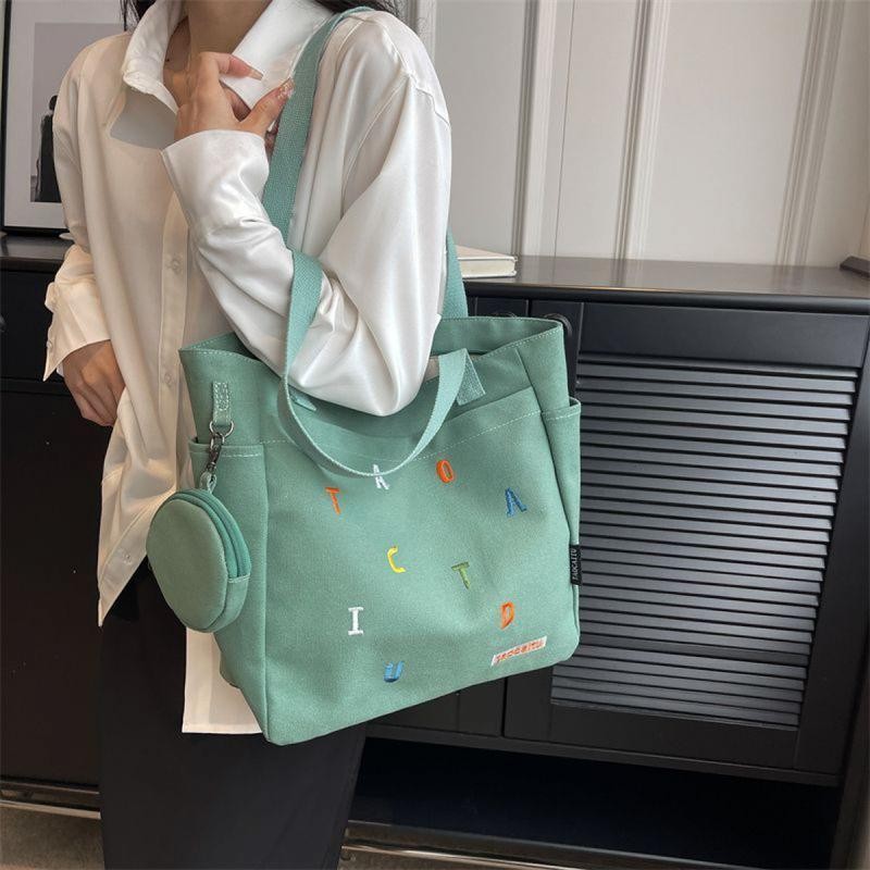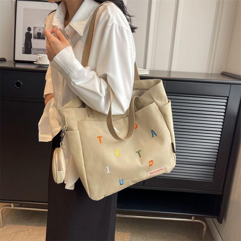 กระเป๋าโท้ทผ้าแคนวาส ดีไซน์ดั้งเดิม สไตล์ญี่ปุ่น ปักตัวอักษร อเนกประสงค์ เหมาะสำหรับการเดินทาง