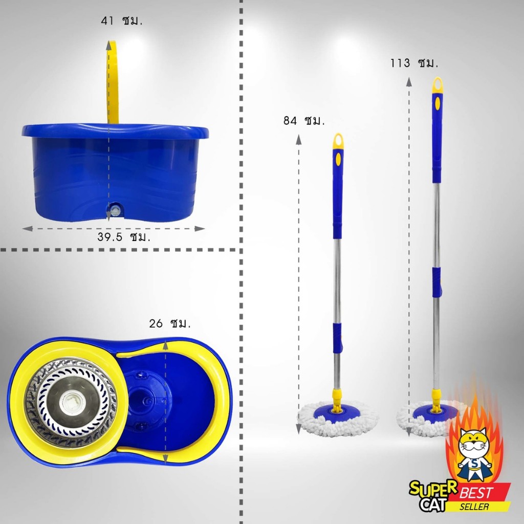 (โรงงานไทย) SUPERCAT ชุดถังปั่นพร้อมไม้ม็อบถูพื้น รุ่นแมวถูพื้น แถมผ้าม็อบถูพื้นไมโครไฟเบอร์ 2 ผืนในกล่อง