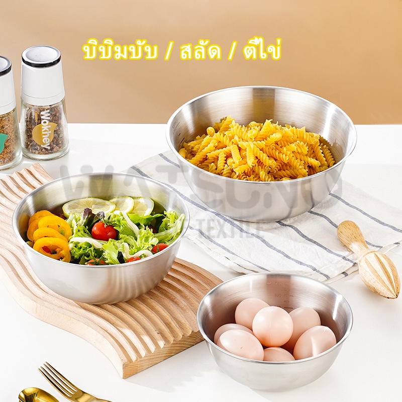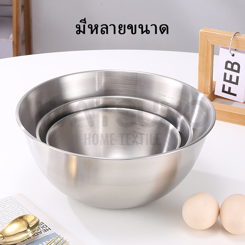 Watsuno.ชามผสมอาหาร สแตนเลสแท้ มีสเกล MAXIE (มี5ขนาด) ชามผสม ชามผสมแป้ง ชามผสมสแตนเลส โถผสมแป้ง โถผสมอาหาร โถผสม