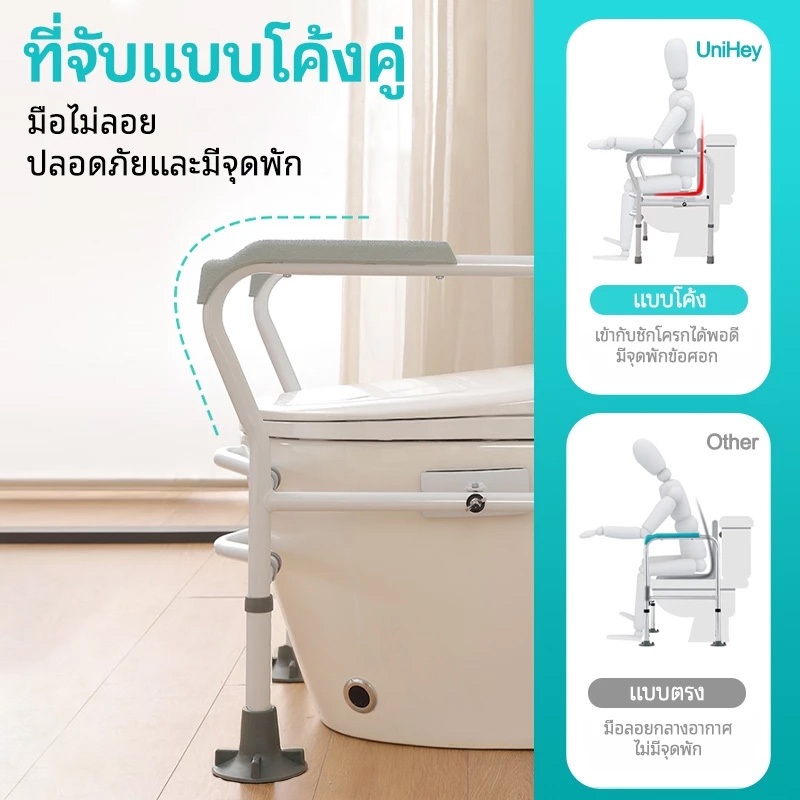 【UniHey】ราวจับชักโครก ราวจับ ใน ห้องน้ำ สำหรับ ผู้สูงอายุ ปรับระดับความสูงได้ รับน้ําหนักได้ 200KG ติดตั้ง8นาที