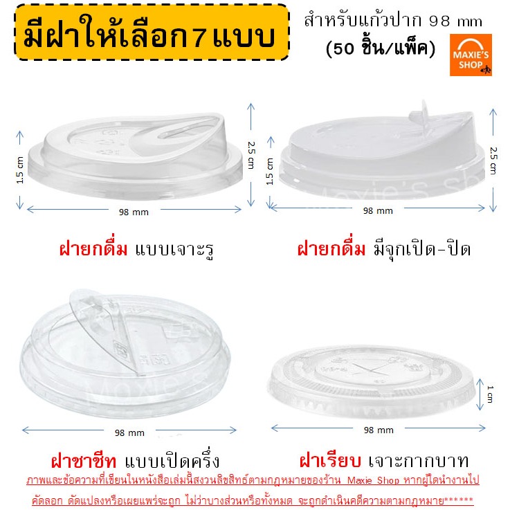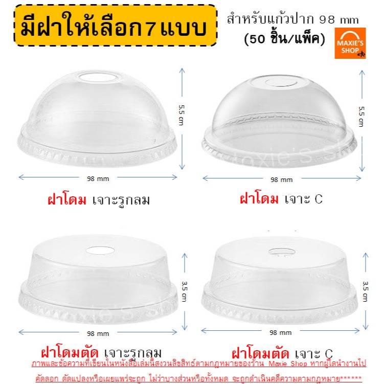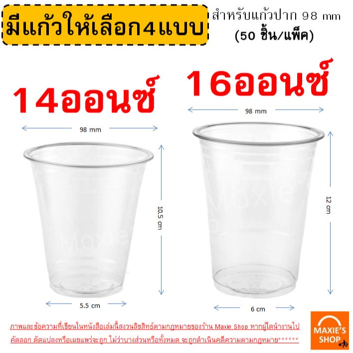 แก้ว PET แก้วพลาสติก 50ใบ MAXIE ทรงสตาร์บัค ฝาโดม ฝาเรียบ ฝาฮาฟ ฝายกดื่ม ฝาชาชีส ฝาวิปครีม FPC KK CUP แก้วพลาสติกใส ปาก9