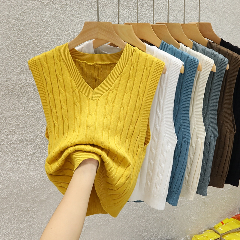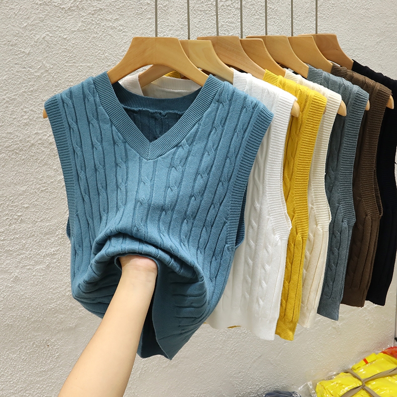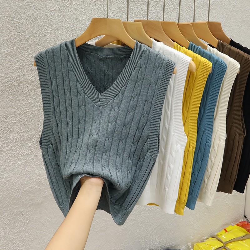 K ถักเสื้อกั๊กผู้หญิง V คอเสื้อกั๊กแขนกุด Layered All-Match เสื้อกั๊กด้านนอกสั้นด้านบน