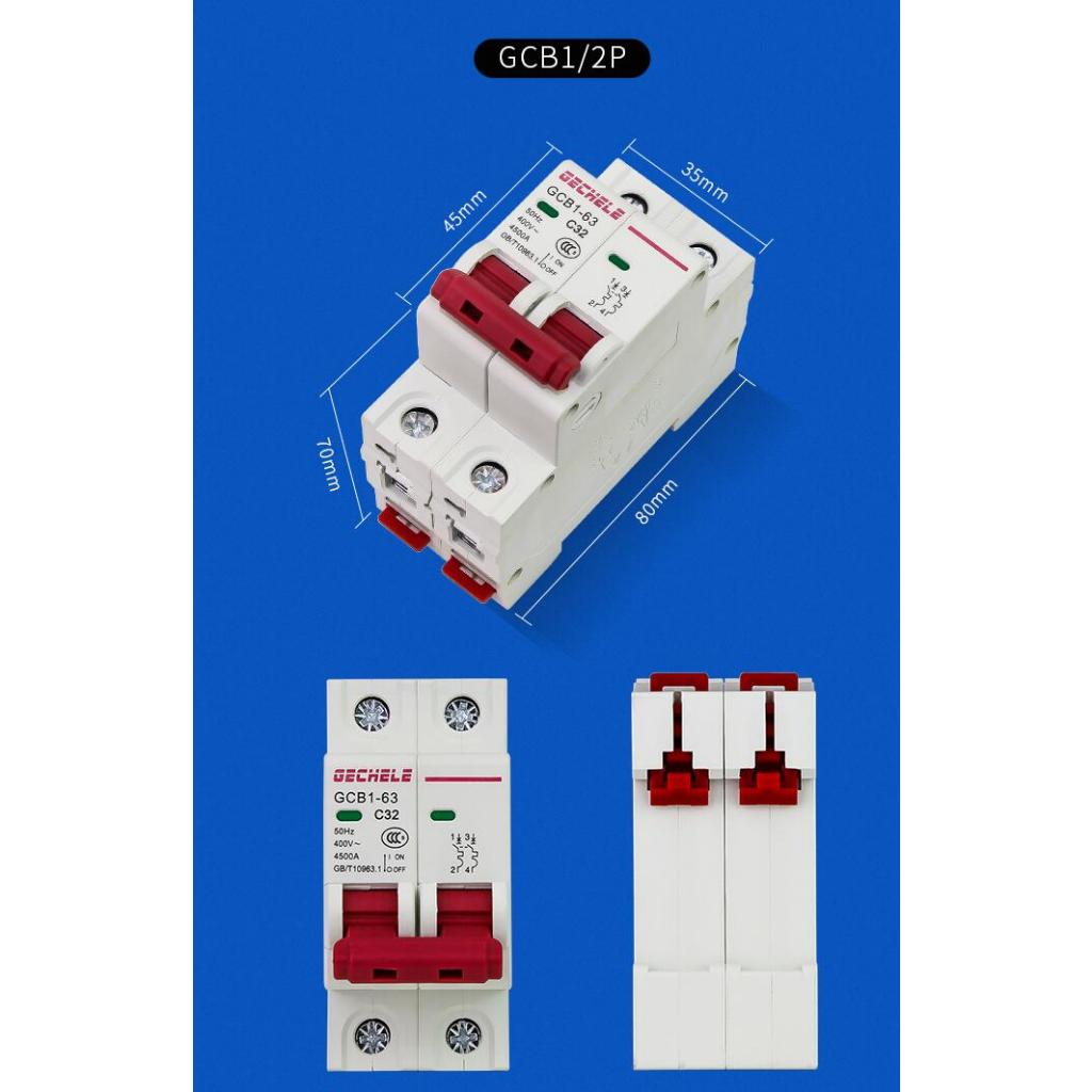 GCDQCN ลูกเซอร์กิต เบรคเกอร์ ลูกย่อย Circuti Breaker MCB 2P AC/DC : 6A/10A/16A/20A/25/32A/40A/50/63A