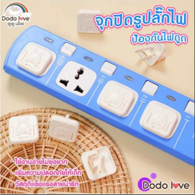 จุกปิดรูปลั๊กไฟ DODOLOVE ที่อุดรูปลั๊กมีที่จับ กันเด็กแหย่ กันไฟช็อต ป้องกันไฟดูด 1 แพ็ค 12 ชิ้น
